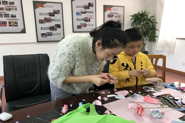 在此次活动中,会员们和小朋友一起学习制作皱纹纸花,共同运用丰富的想象力做出了各式各样的花朵,活动会场气氛热烈,小朋友们和会员们其乐融融,同时也有善于动手的会员帮助小朋友完成精美的花束,并在活动结束后将花束赠送给小朋友。