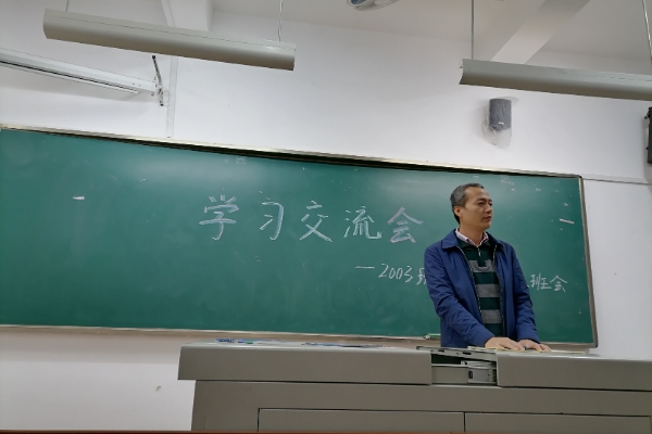 (通讯员 蒋沅华)11月5号上午9点,2003班在36365线路检测中心入口210教室举行学习交流会。此次班会参与人员有2020级辅导员欧阳唯一、2003班班导师周旺以及2003班全体同学。