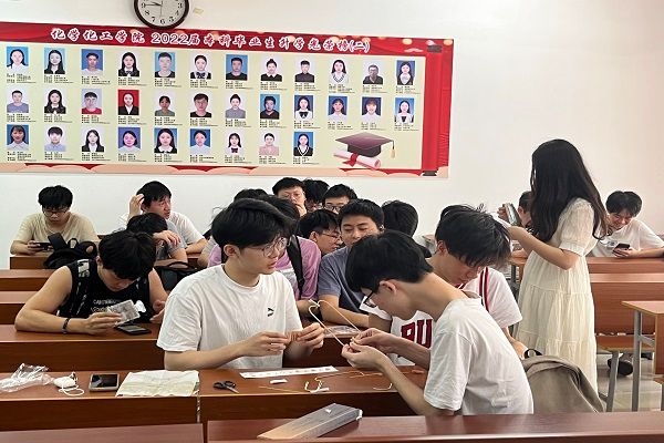 此次活动由团支书陈伊睿主持,2106班全体同学参加,共计33人。此次活动开始时,团支书陈伊睿首先上台向全体同学介绍了此次活动的主要流程。现场同学在团支书陈伊睿的分配下,自愿分成三个小组。其中第一组同学负责按图纸拼凑木质红船的拼图,第二组同学负责设计制作干花书签,第三组同学则负责手工纸鸢的制作。最后,三个作品制作完成后,经过全体同学同意商讨,由团支书陈伊睿作为2106班支部的代表,将南湖红船模型和手作纸鸢分别赠予学院党委副书记段婷老师和21级辅导员张婧老师,以表2106班全体同学对他们的敬意与感谢之情。