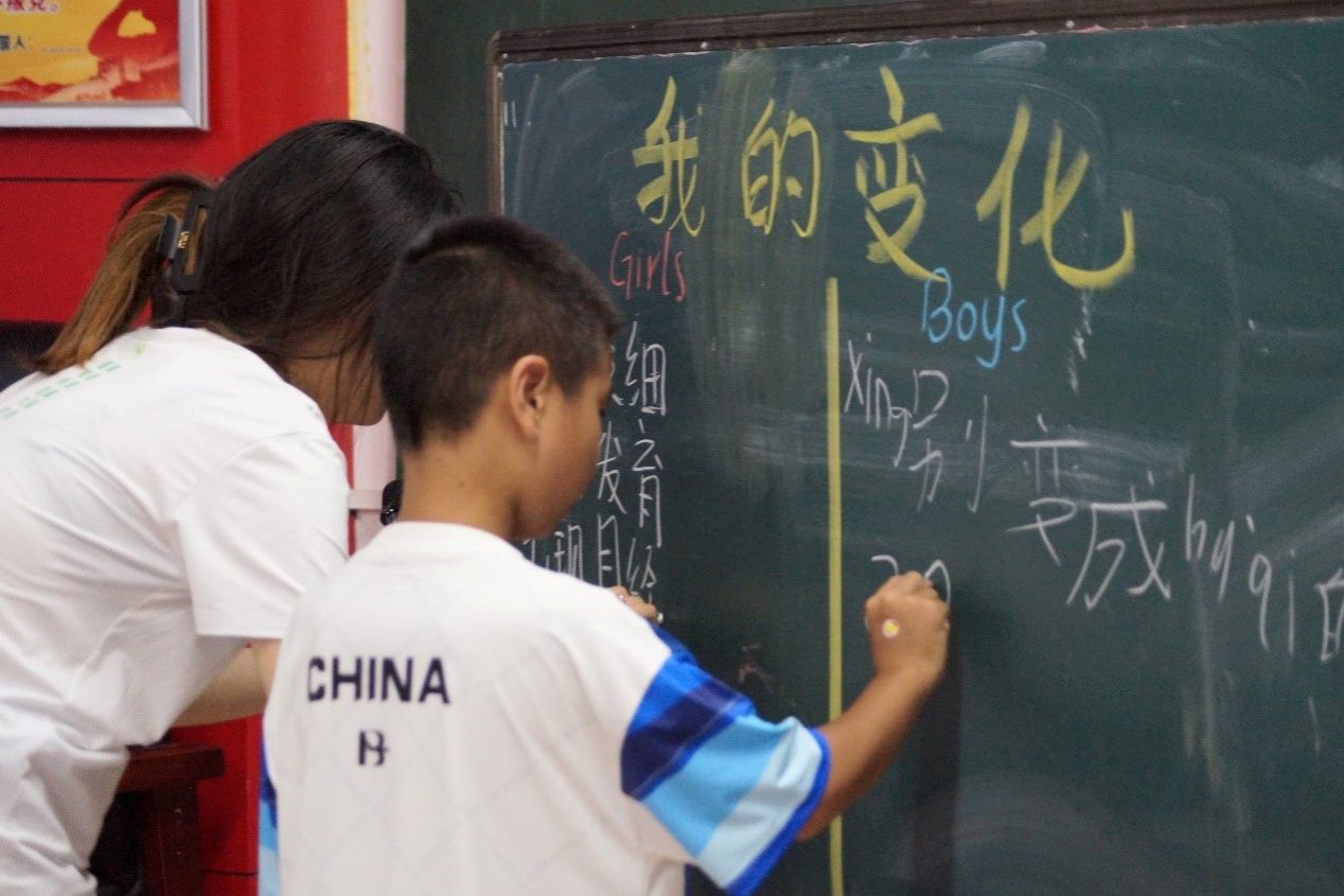 罗佳铭引导学生填写青春期变化