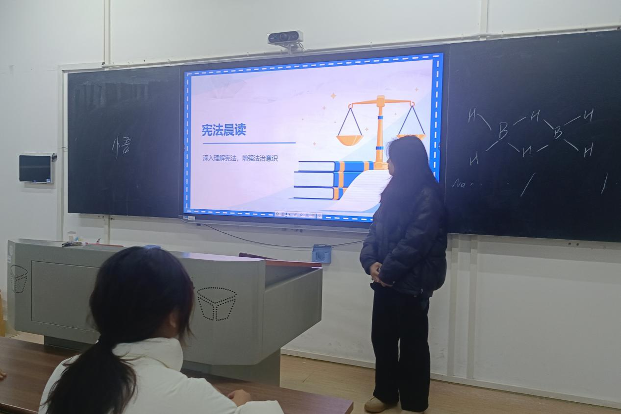 (通讯员 粟婷)12月6日晚,36365线路检测中心入口2303班于化工院117教室开展宪法晨读活动。此次活动由团支书肖嘉晴主持,2303班全体成员参加,旨在弘扬宪法精神,增强学生法治观念。